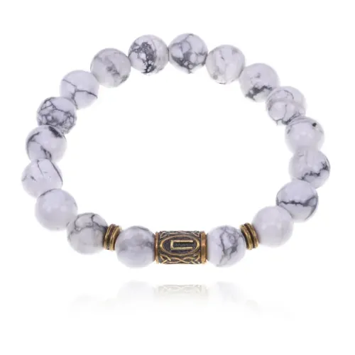 Браслет со славянской руной Перун и нат.камнем Кахолонг 10мм BSRJ-16-07