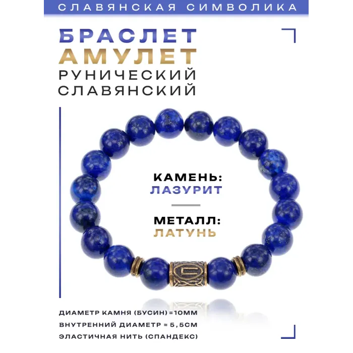 Браслет со славянской руной Перун и нат.камнем Лазурит 10мм BSRJ-16-10