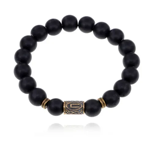 Браслет со славянской руной Перун и синт.камнем Шунгит 10мм BSRJ-16-24