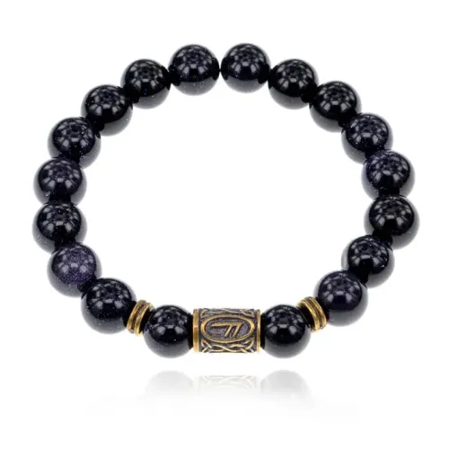 Браслет со славянской руной Есть и синт.камнем Синий авантюрин 10мм BSRJ-17-02