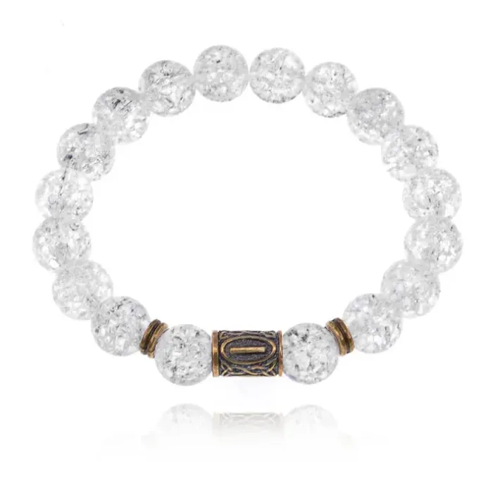 Браслет со славянской руной Исток и синт.камнем Сахарный кварц 10мм BSRJ-18-16