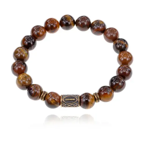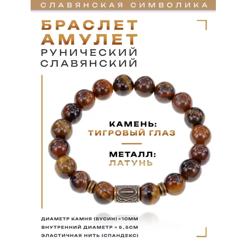 Браслет со славянской руной Исток и нат.камнем Тигровый глаз 10мм BSRJ-18-19