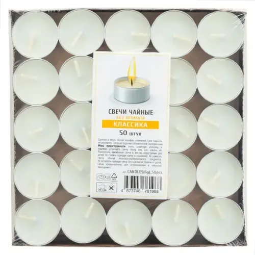 Свечи чайные в гильзе Классика (6 г) 50 шт/уп