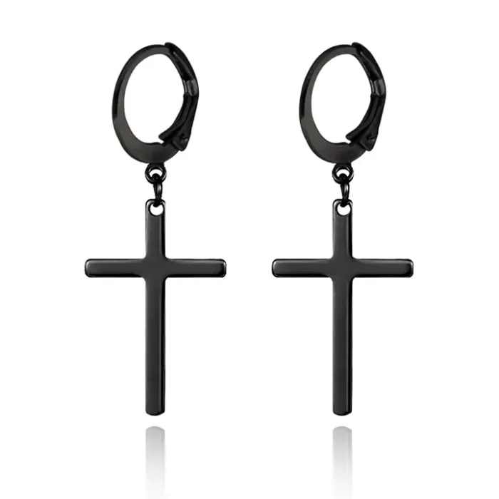 Серьги в форме креста из нержавеющей стали и бижутерного сплава с замком типа конго.