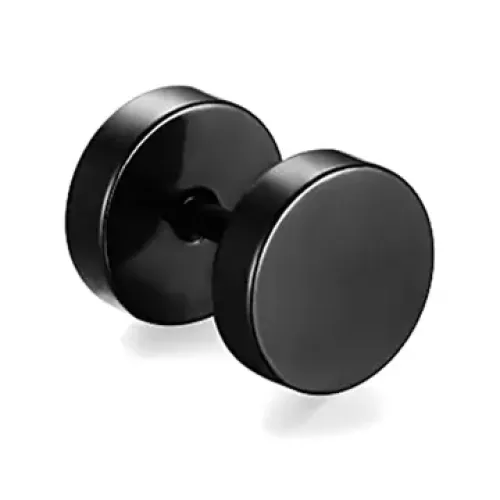 Серьга-гвоздик в форме гантели из нержавеющей стали черного цвета с винтовым замком.