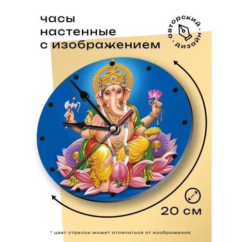 Настенные часы Ганеш — это стильный и оригинальный элемент декора, который привнесет атмосферу восточной культуры в любое пространство. Эти круглые часы с открытым циферблатом диаметром 20 см выполнены из легкого вспененного пластика ПВХ, что делает их не только красивыми, но и практичными.