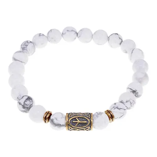 Браслет со славянской руной Мир и нат.камнем Кахолонг, 8мм BSRN-01-07