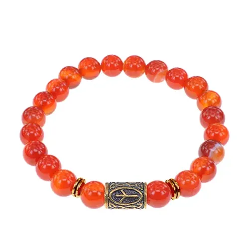 Браслет со славянской руной Мир и нат.камнем Сердолик, 8мм BSRN-01-17