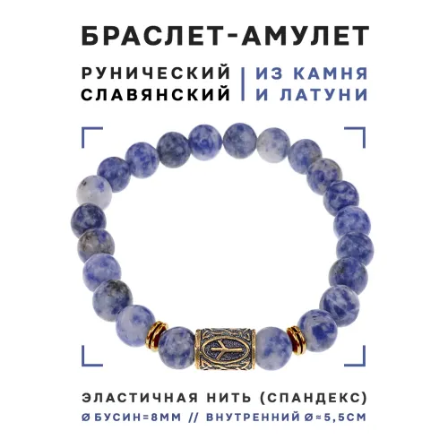 Браслет из натурального камня содалит со славянской руной Мир.