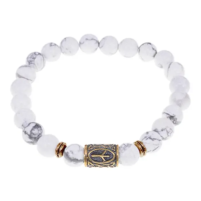 Браслет со славянской руной Чернобог и нат.камнем Кахолонг, 8мм BSRN-02-07