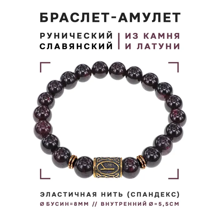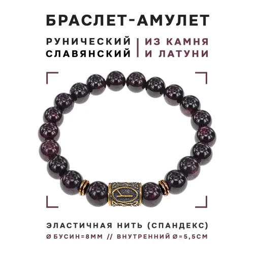 Браслет со славянской руной Алатырь и нат.камнем Гранат, 8мм BSRN-03-06