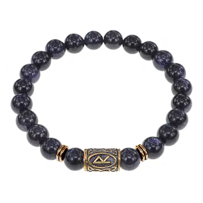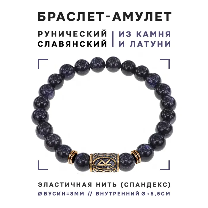 Браслет со славянской руной Радуга и синт.камнем Синий авантюрин, 8мм BSRN-04-02