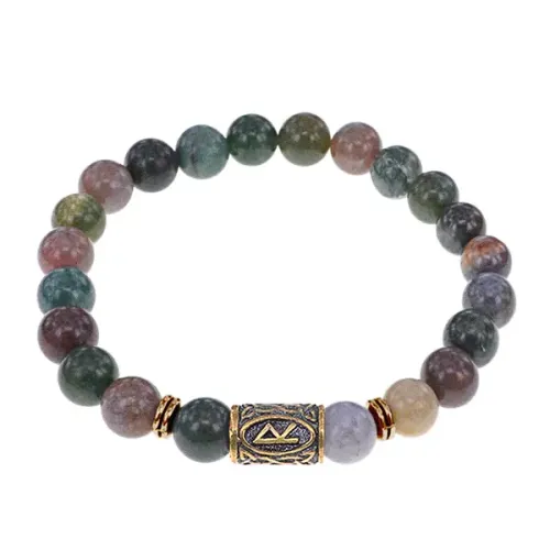 Славянский рунический браслет с натуральным камнем яшма и символом руны Радуга.