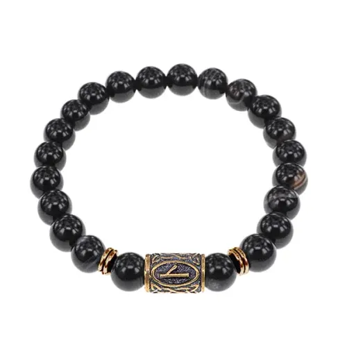 Браслет со славянской руной Нужда и нат.камнем Черный агат, 8мм BSRN-05-23