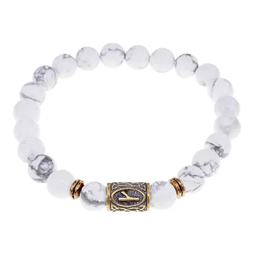 Браслет со славянской руной Крада и нат.камнем Кахолонг, 8мм BSRN-06-07