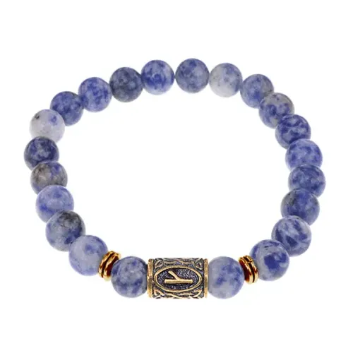 Славянский рунический браслет с натуральным камнем содалит и символом руны Крада.