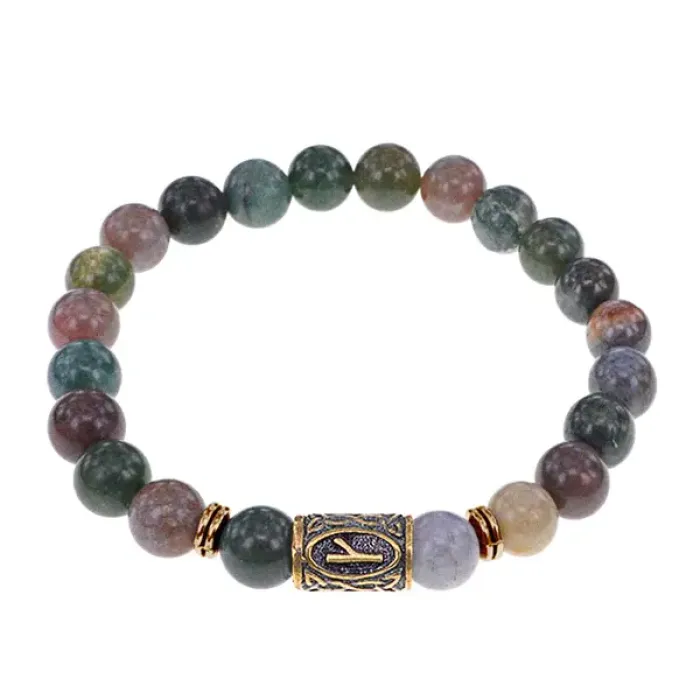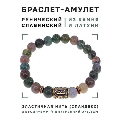 Браслет со славянской руной Крада и нат.камнем Яшма, 8мм BSRN-06-25