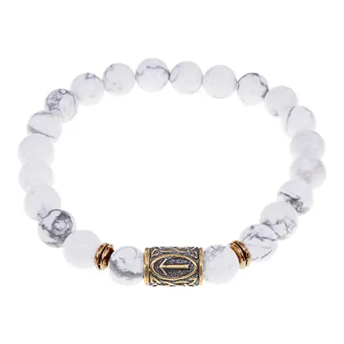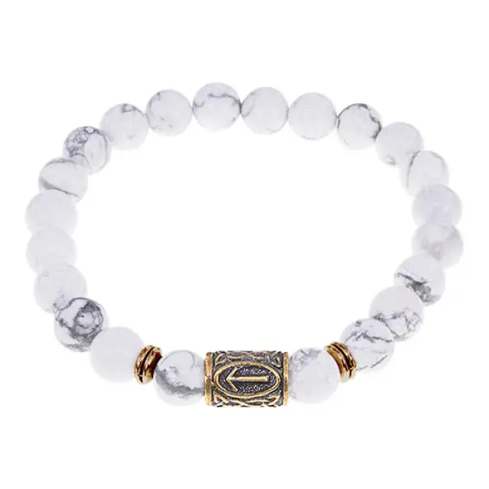 Браслет-стрейч со славянской руной Треба и натуральным камнем кахолонг.