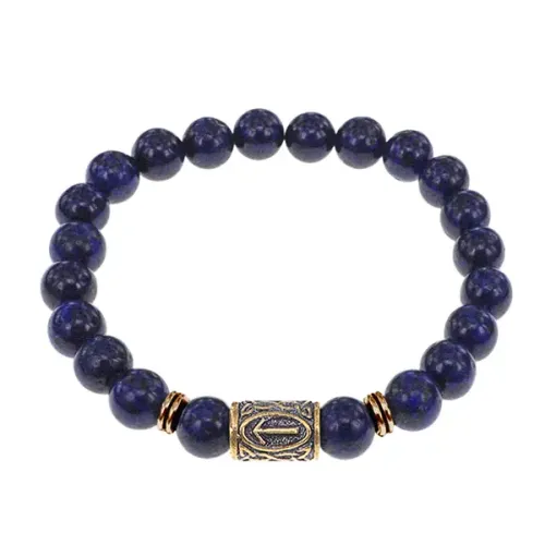 Браслет со славянской руной Треба и нат.камнем Лазурит, 8мм BSRN-07-10