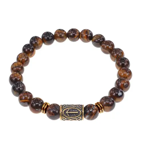 Браслет со славянской руной Треба и нат.камнем Тигровый глаз, 8мм BSRN-07-19