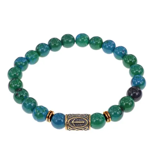 Браслет со славянской руной Треба и синт.камнем Хризоколла, 8мм BSRN-07-21