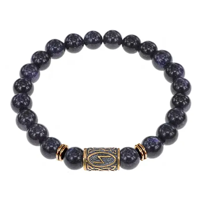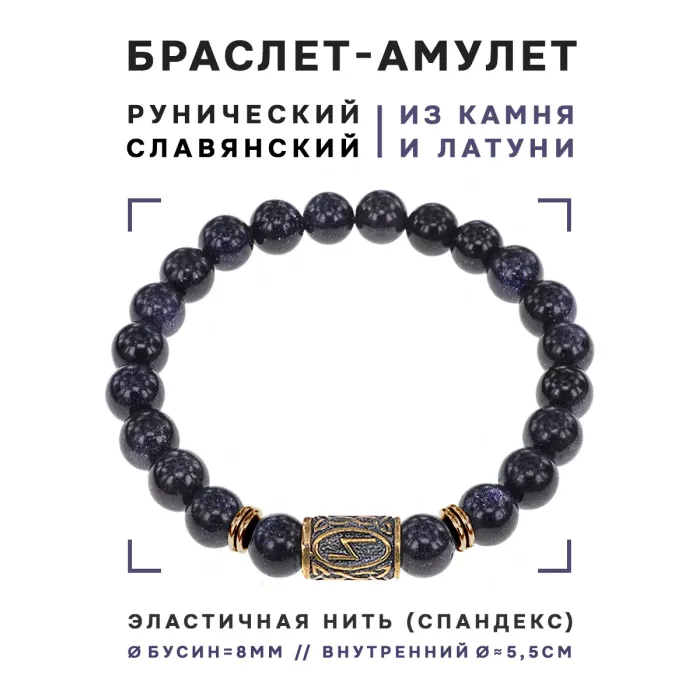Браслет со славянской руной Сила и синт.камнем Синий авантюрин, 8мм BSRN-08-02