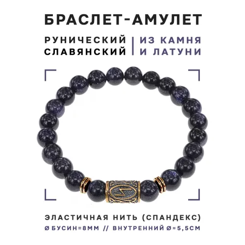 Браслет со славянской руной Сила из синтетического камня синий авантюрин.