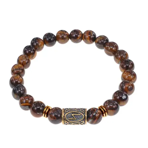 Браслет со славянской руной Сила и нат.камнем Тигровый глаз, 8мм BSRN-08-19