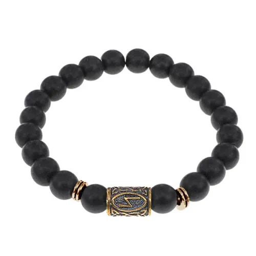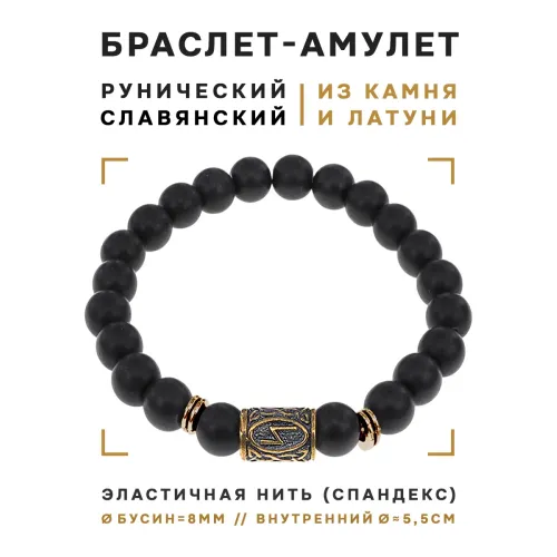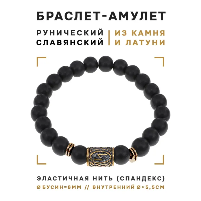 Браслет со славянской руной Сила и синт.камнем Шунгит, 8мм BSRN-08-24