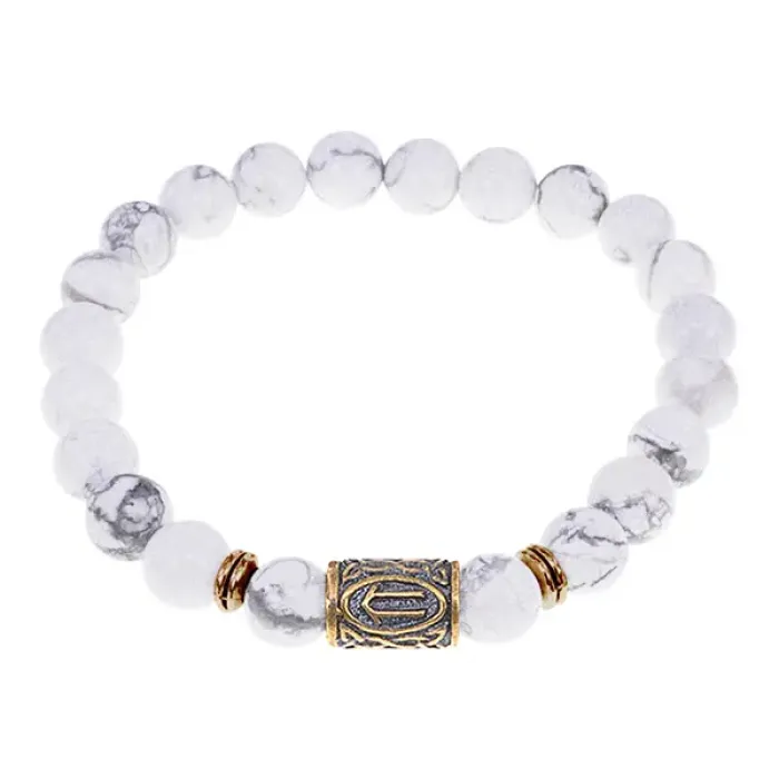 Браслет из натурального камня кахолонг со славянской руной Ветер.