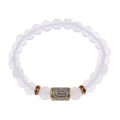 Браслет со славянской руной Ветер из синтетического лунного камня (опалита).