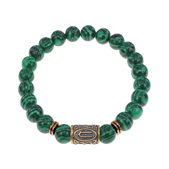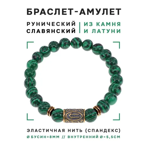 Браслет со славянской руной Ветер и синт.камнем Малахит, 8мм BSRN-09-12