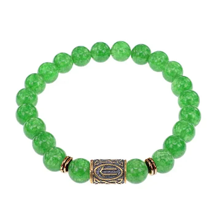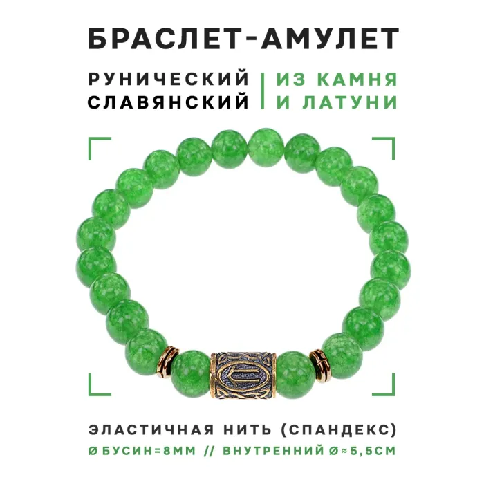 Браслет со славянской руной Ветер и нат.камнем Нефрит, 8мм BSRN-09-13
