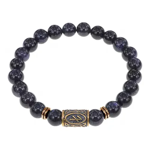 Браслет со славянской руной Берегиня и синт.камнем Синий авантюрин, 8мм BSRN-10-02