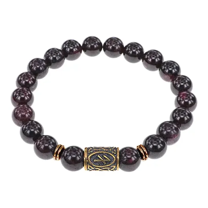 Браслет со славянской руной Берегиня и нат.камнем Гранат, 8мм BSRN-10-06