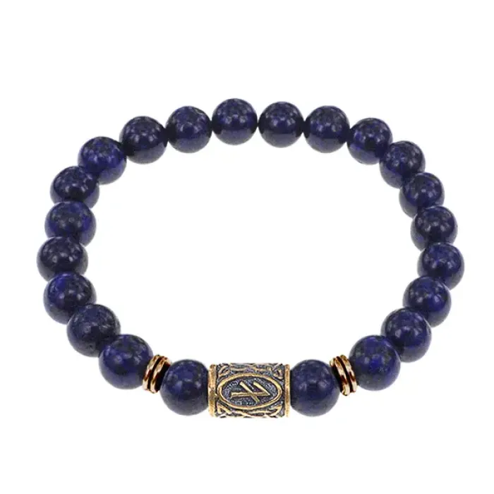 Браслет со славянской руной Берегиня и нат.камнем Лазурит, 8мм BSRN-10-10