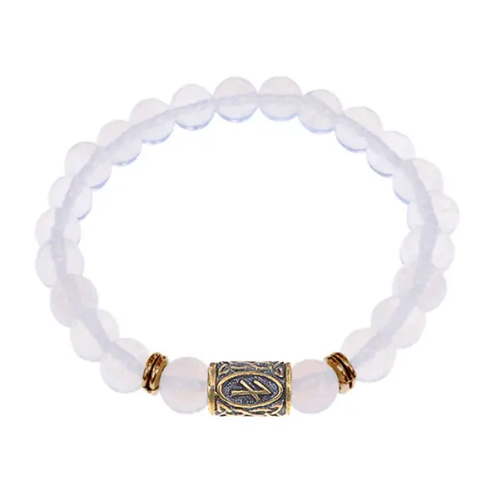 Браслет со славянской руной Берегиня и синт.камнем Лунный камень, 8мм BSRN-10-11