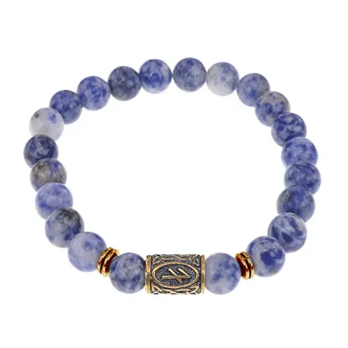Браслет-стрейч со славянской руной Берегиня и бусинами из натурального камня содалит.