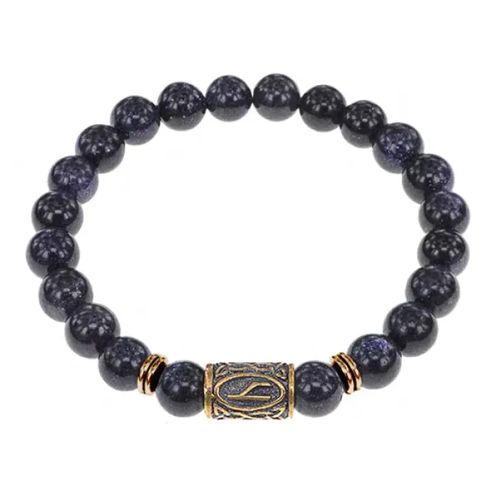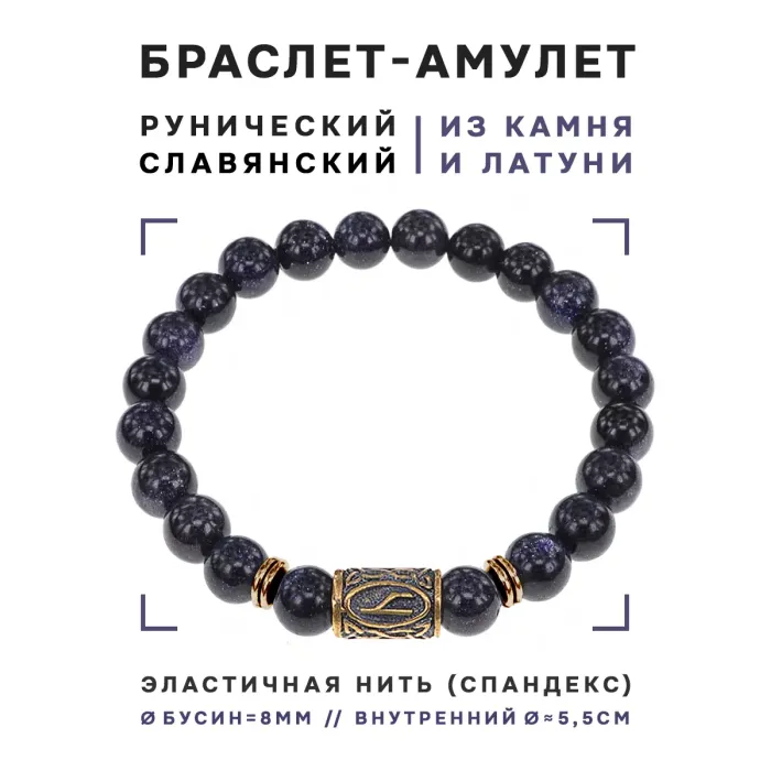 Браслет со славянской руной Уд и синт.камнем Синий авантюрин, 8мм BSRN-11-02
