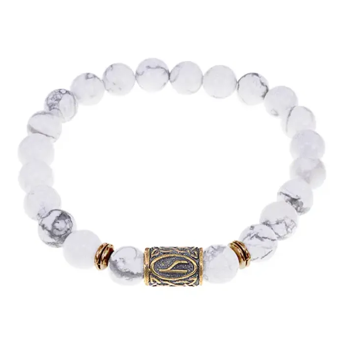 Браслет со славянской руной Уд и нат.камнем Кахолонг, 8мм BSRN-11-07