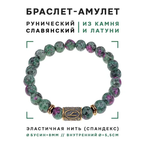 Браслет со славянской руной Уд и синт.камнем Цоизит, 8мм BSRN-11-22