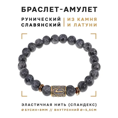 Браслет со славянской руной Леля и нат.камнем Лабрадор, 8мм BSRN-12-08