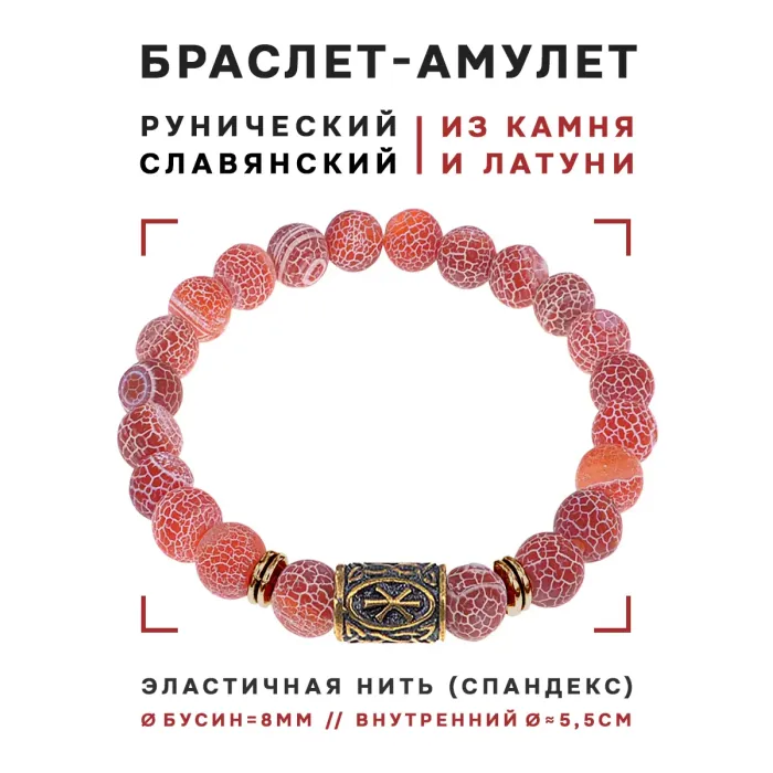 Браслет со славянской руной Рок из натурального камня африканский агат.