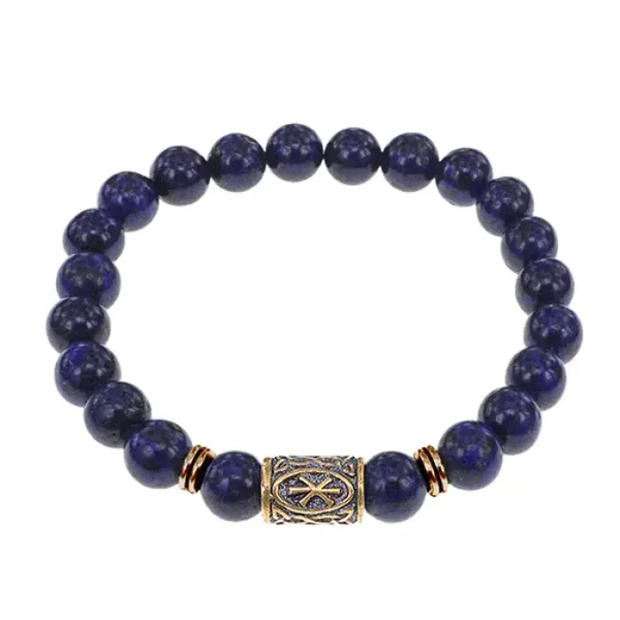 Браслет со славянской руной Рок и нат.камнем Лазурит, 8мм BSRN-13-10