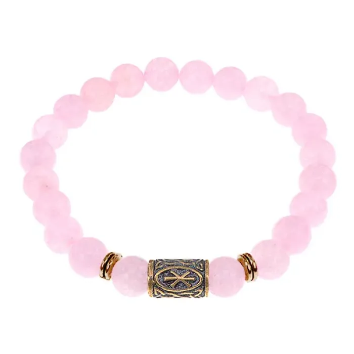 Браслет со славянской руной Рок и нат.камнем Розовый кварц, 8мм BSRN-13-15