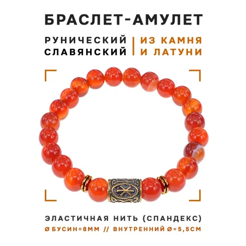 Браслет со славянской руной Рок и нат.камнем Сердолик, 8мм BSRN-13-17