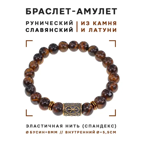 Браслет со славянской руной Рок и нат.камнем Тигровый глаз, 8мм BSRN-13-19