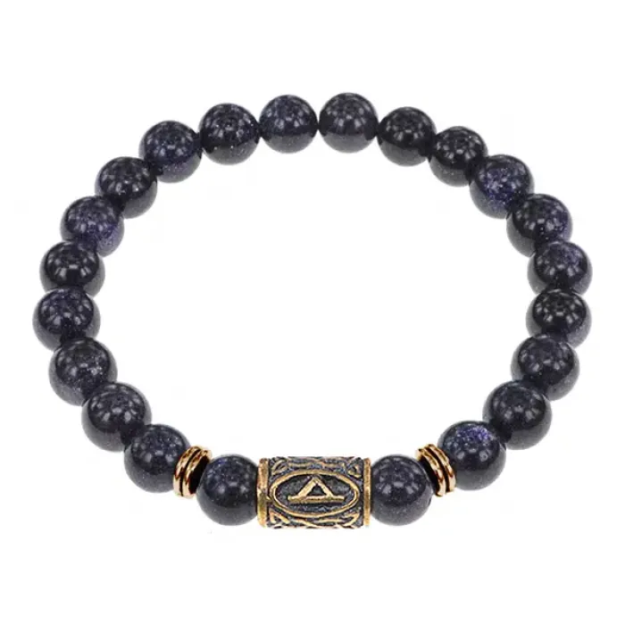 Браслет со славянской руной Даждьбог и синт.камнем Синий авантюрин, 8мм BSRN-15-02