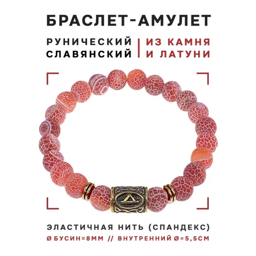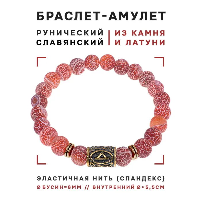 Браслет со славянской руной Даждьбог и натуральным камнем Африканский агат. Диаметр бусин 8 мм.