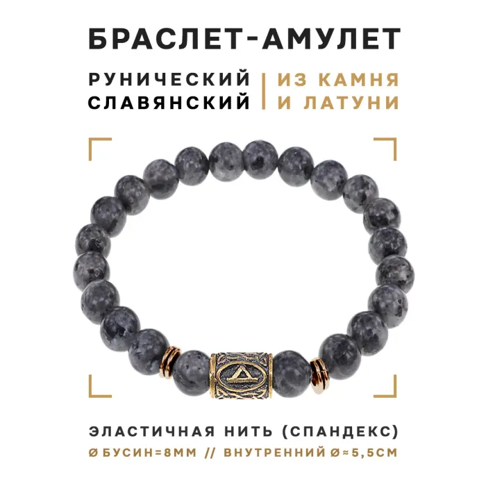 Браслет со славянской руной Даждьбог и нат.камнем Лабрадор, 8мм BSRN-15-08